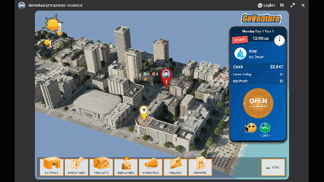 In one simulation, students run a business. They make ongoing decisions about pricing, inventory, hiring, finances, and more.